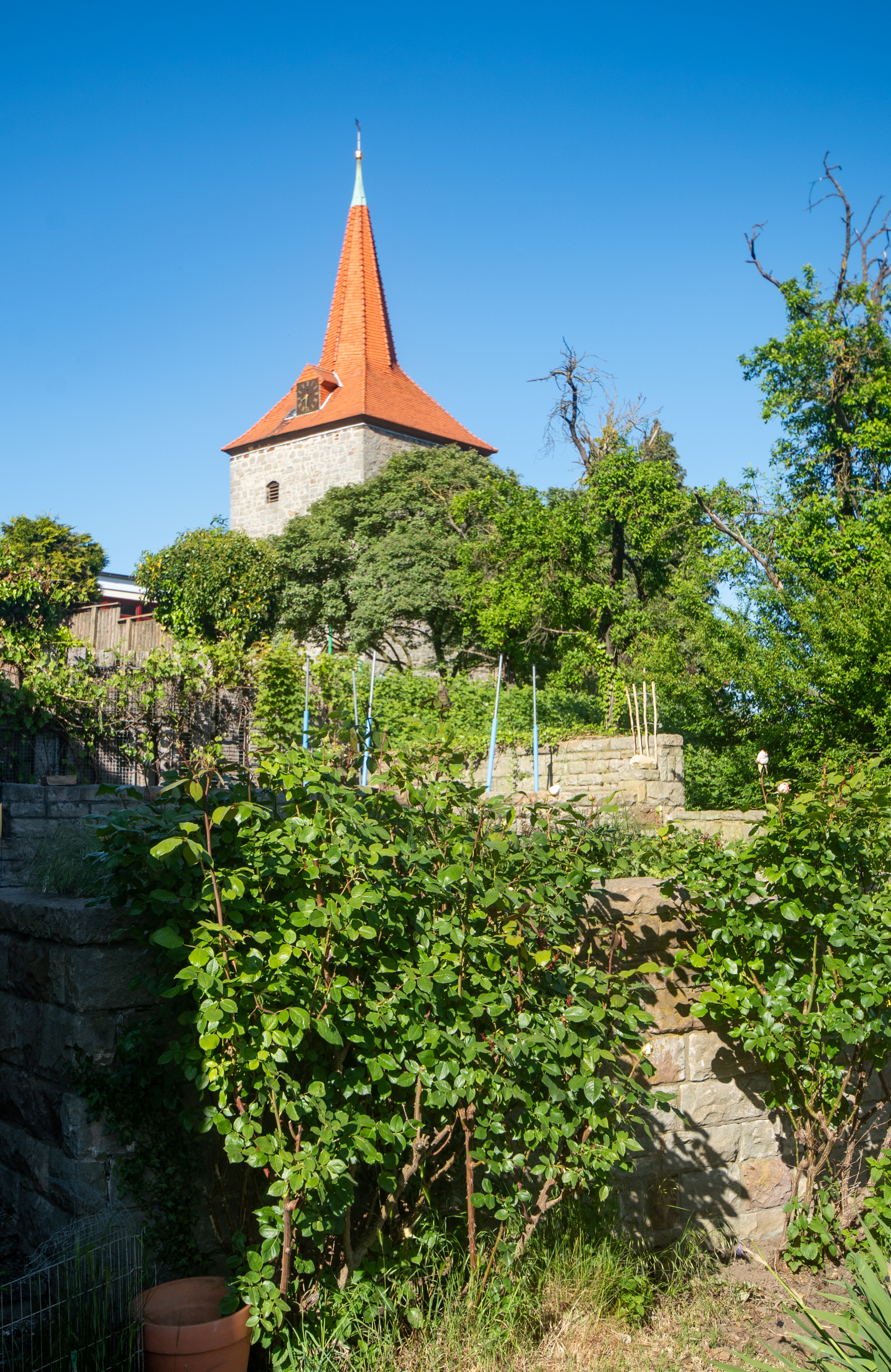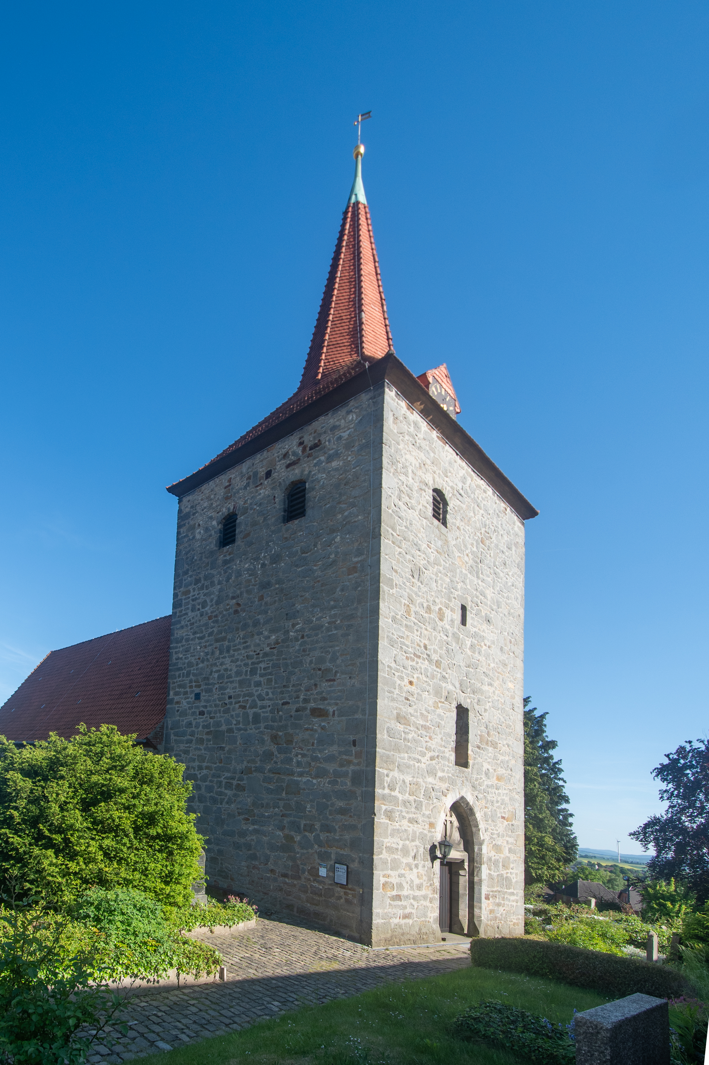 Lüdersen hat zurecht die Bezeichnung "Bergdorf". Der alte Wehrturm der Kirche gibt der Straße seinen Namen und es geht wirklich steil bergauf.