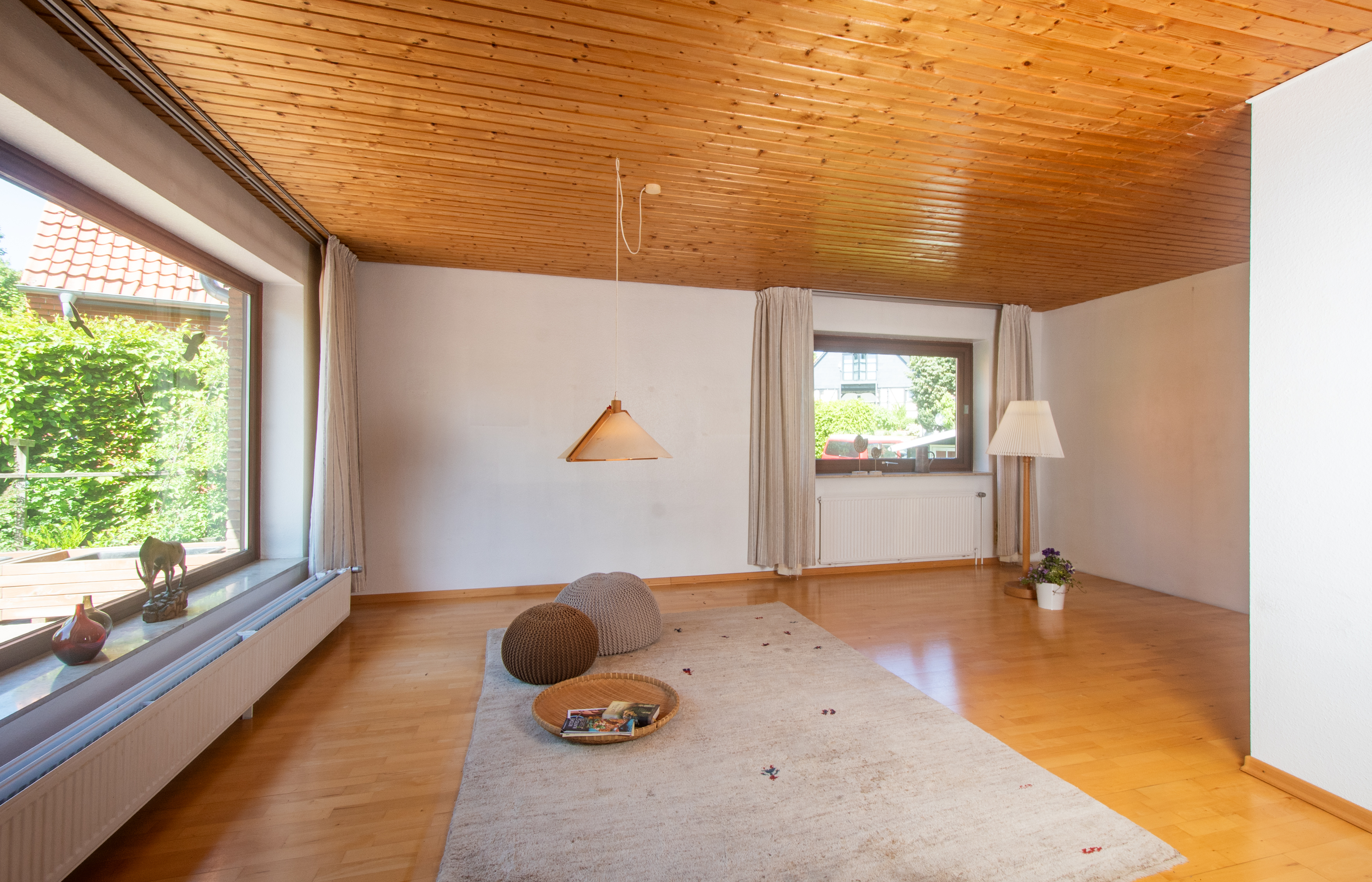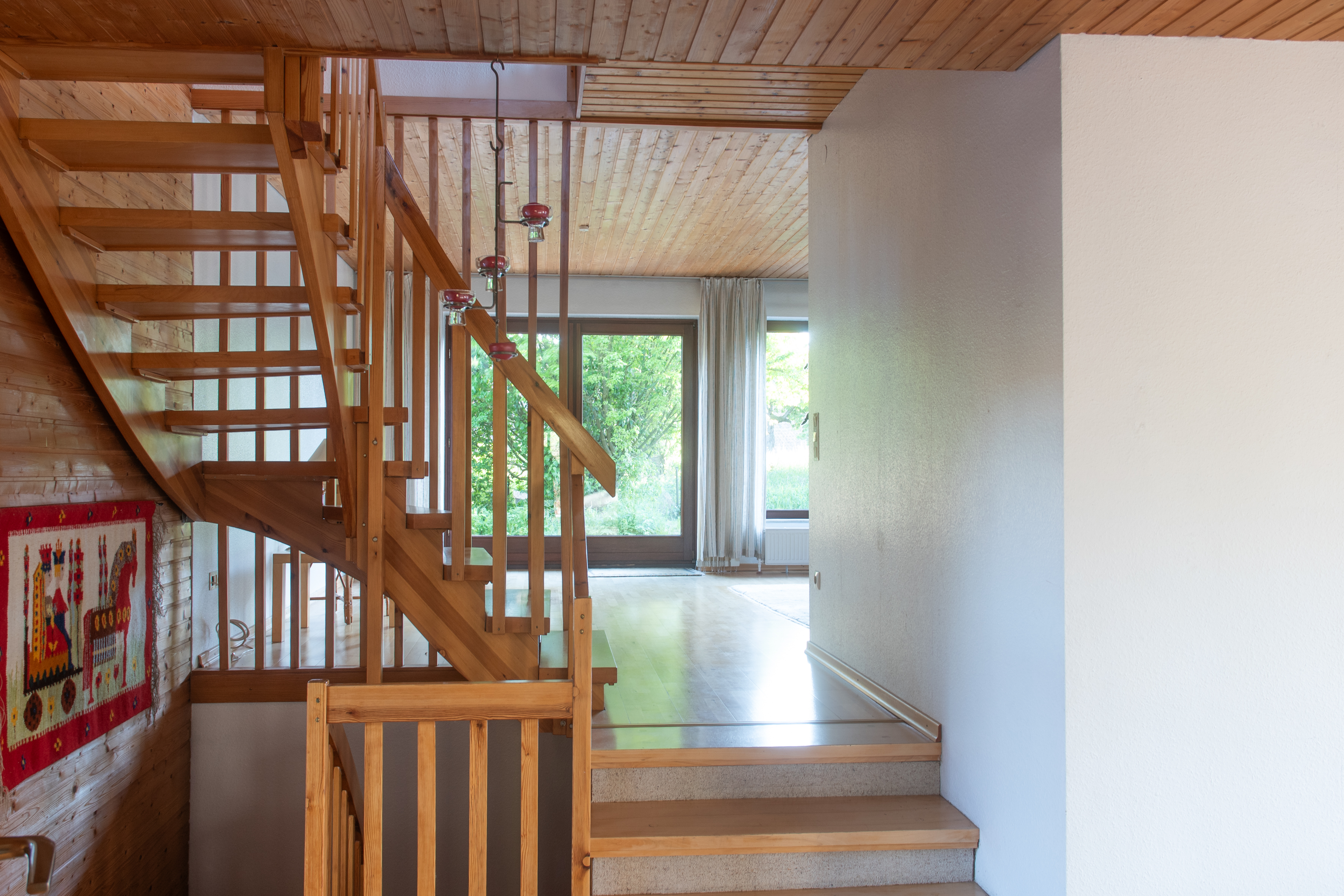 Der erste Splitt-Level-Übergang (3 Stufen) führt zum gemütlichen Wohnbereich.