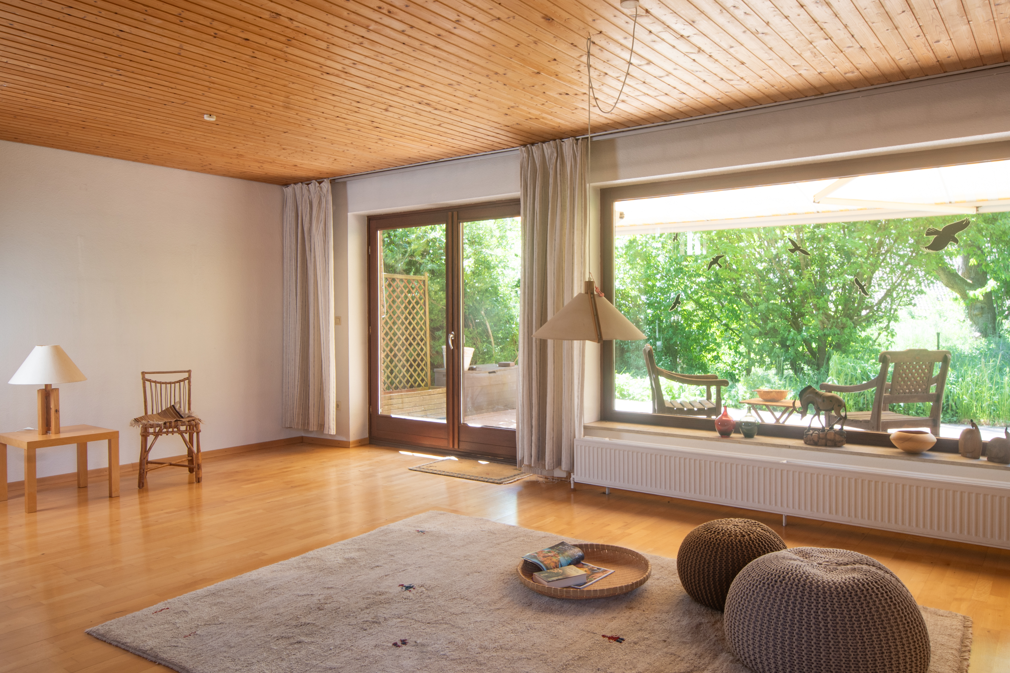 Der Boden ist mit Buchenholzparkett belegt und die Decken sind – ganz im skandinavischen Stil holzvertäfelt.