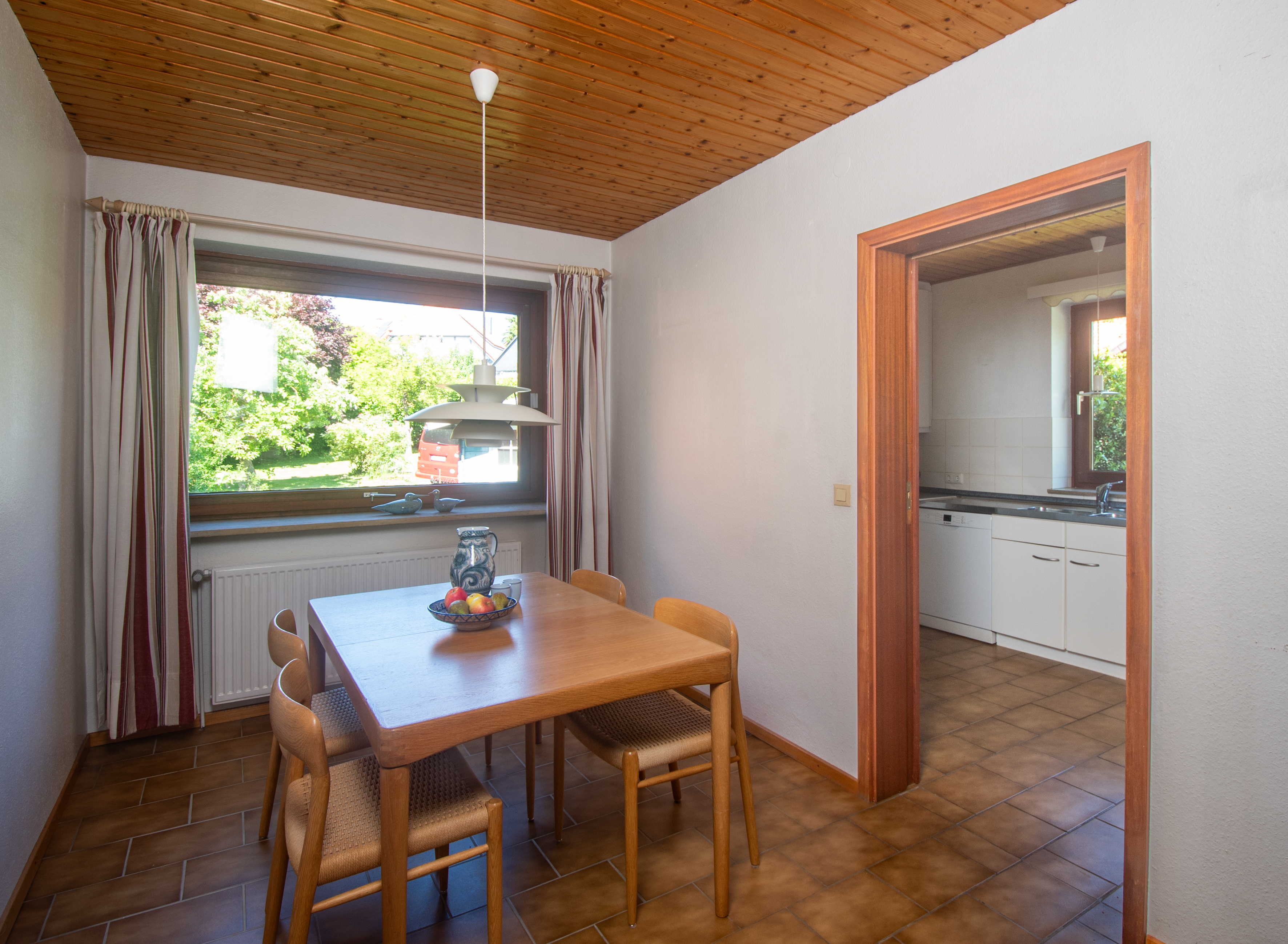 Ein einladender Essbereich liegt direkt daneben – alles gut durchdacht.