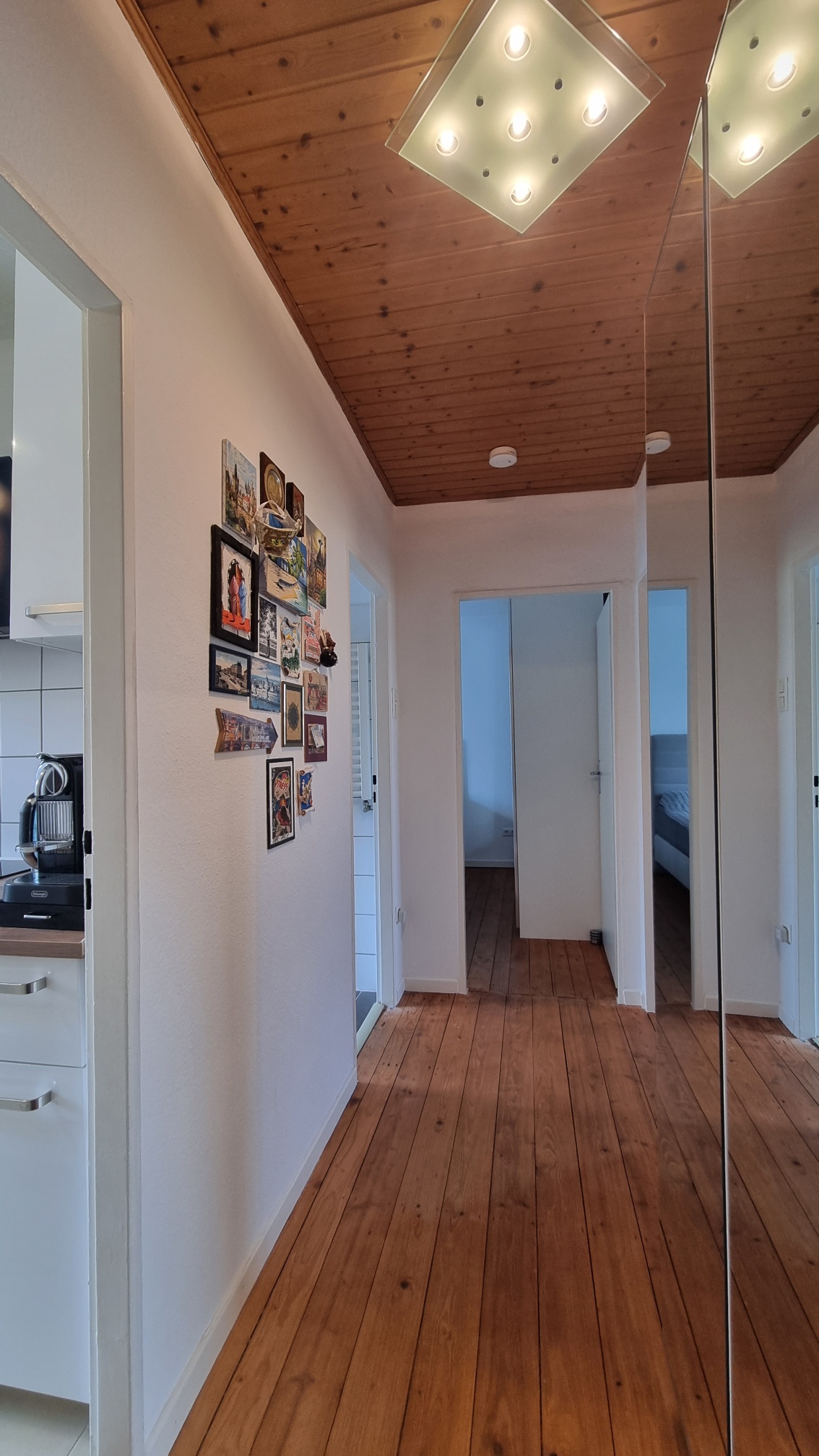 Gemütlichkeit entsteht durch die in der ganzen Wohnung liegenden aufgearbeiteten Dielenböden.