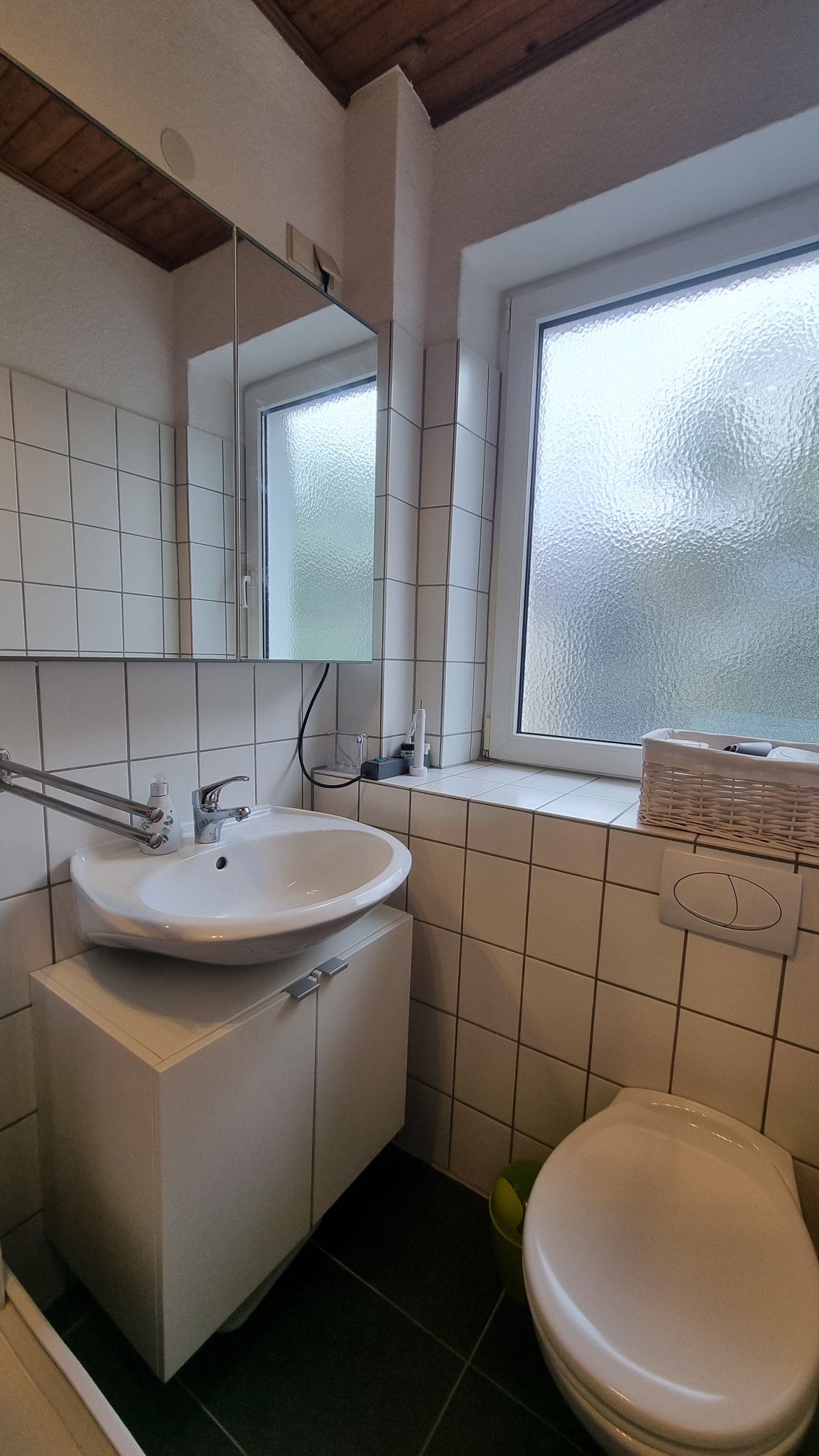 Das Bad wurde vor ca. 10 Jahren in der Wohnung erneuert und die Elektrik ergänzt – die Wohnung erhielt einen FI-Schalter.