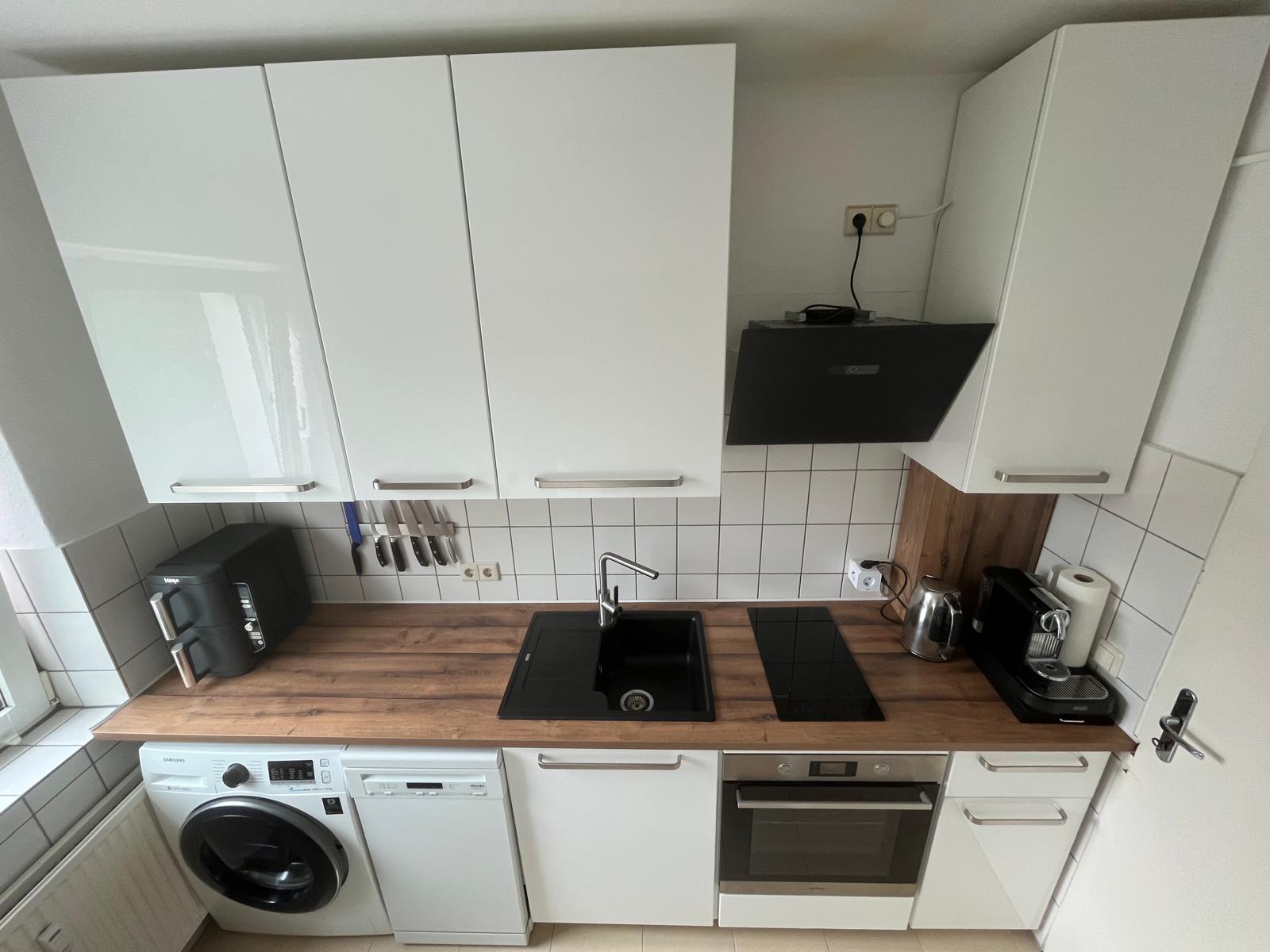 Die kompakte Küche wurde im Herbst letzten Jahres mit einer neuen Einbauküche mit 2-Platten-Induktionsherd, Backofen, Dunstabzugshaube, Spüle und Spülmaschine ausgestattet.